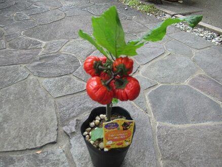 こんばんは。この写真はソラナムパンプキン昨年の9月末にハロウイン用に売られていたものです。見た目は、ミニカボチャみたいですが食べられないそう···