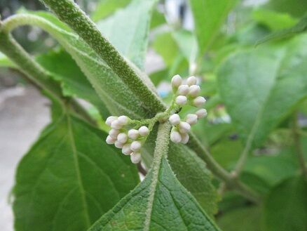 こんばんは。これは桃式部の花の蕾です。もうすぐ小さな花が咲きます。桃色の実ができるのが楽しみです。シンビジウムのミルクティーガーベラの花弁の···